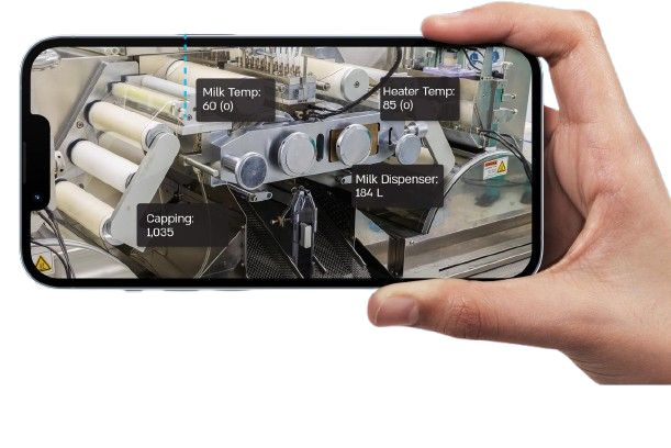 La Réalité Augmentée (AR) superpose des données numériques en temps réel — comme des informations sur les machines ou les applications — sur des équipements physiques. Cela permet aux utilisateurs de visualiser en direct les données des API (lectures des capteurs, état des machines, variables de processus, etc.) directement sur le modèle 3D d'une machine, le tout via l’écran mobile d’un technicien ou opérateur.